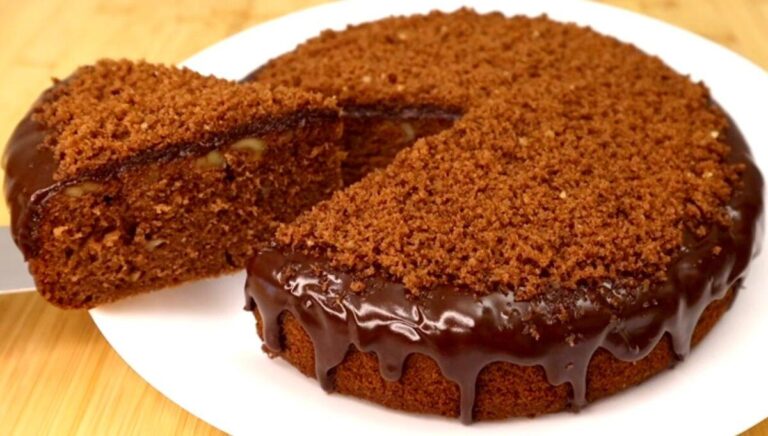 10. Далі торт дістаємо, поливаємо розтопленим шоколадом. Це найпростіший спосіб прикраси. Можна залишити крем і після зняття форми підрівняти краї, можна використовувати посипання, фрукти і все, що вкаже вам ваша фантазія. В даному випадку я зробила звичайнісіньку і швидку прикрасу – шоколадну павутинку.