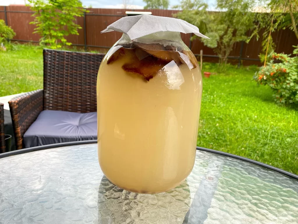 У мене стояв напій на веранді, там було досить спекотно. Важливо, щоб не було прямого сонячного проміння. Кришкою не закривати!