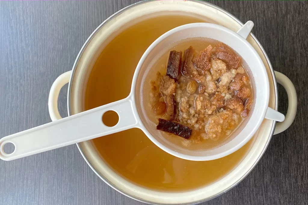 Через добу процідила квас через сито, перелила у ковшин, закрила кришкою та поставила в холодильник.