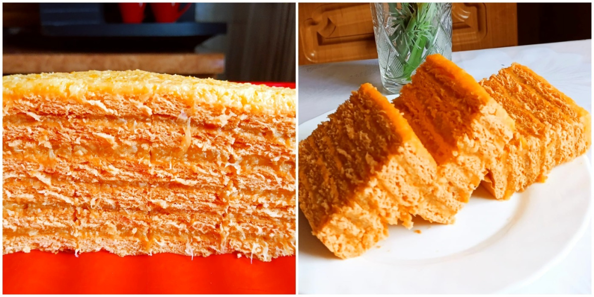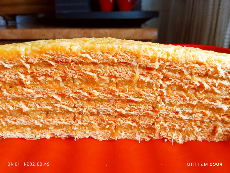З однієї порції виходять 3 коржі. Форма у мене велика 50/30.