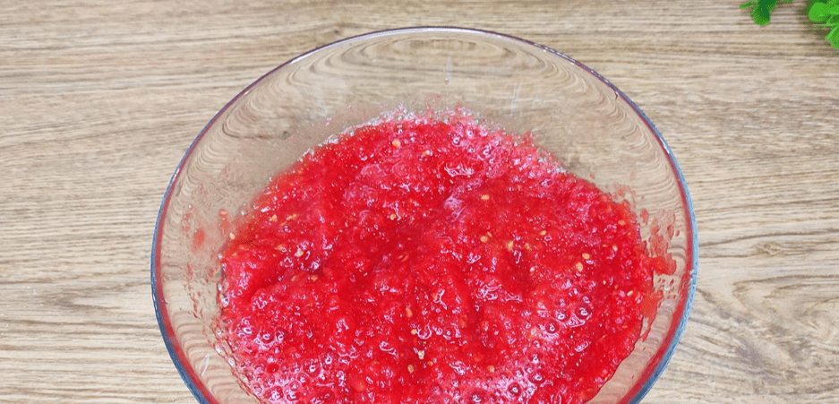 Помідори очищаємо від шкірки і перекручуємо на м’ясорубці (середня решітка).