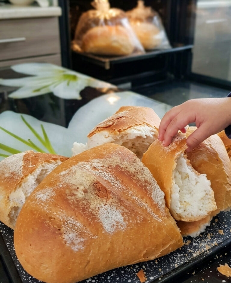 - Миску змащуємо олією і укладаємо туди тісто. Накриваємо харчовою плівкою та залишаємо у теплому місці на вистоювання на 1 годину. Тісто має збільшитися у 2-3 рази.