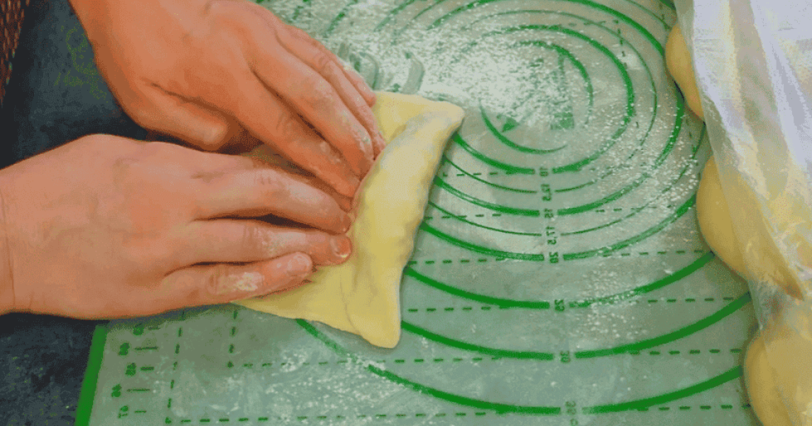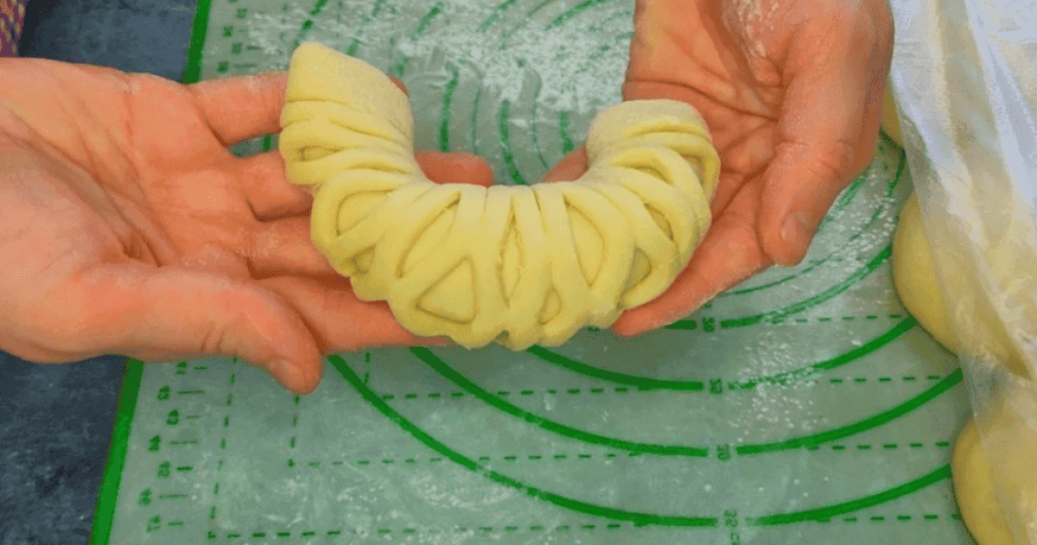 Тісто, що підійшло розділити на 16 частин, сформувати булочки, як показано на фото нижче