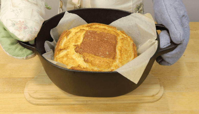 Для випікання хліба я використовую чавунний казан, або каструлю, яку можна поставити в духовку. Об’ємом 5 л. Усередині казана, під час випічки створюється максимальна кількість пари, і хліб добре піднімається та розкривається, а скоринка буде тонка.