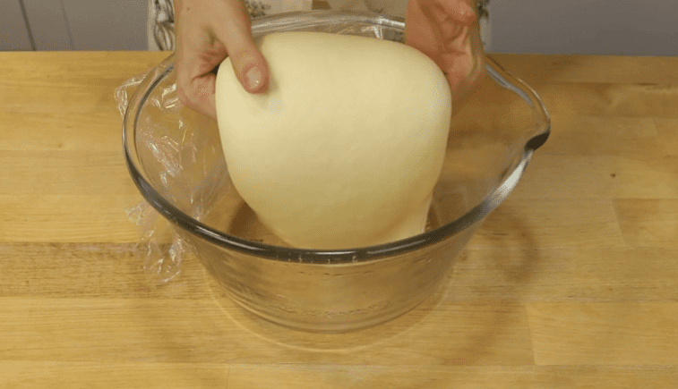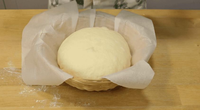 За допомогою паперу переношу заготовку в круглий кошик, або миску, яка підтримуватиме форму заготівлі під час вистоювання. Накриваю рушником, не плівкою. Залишаю підніматися на 45 хвилин.