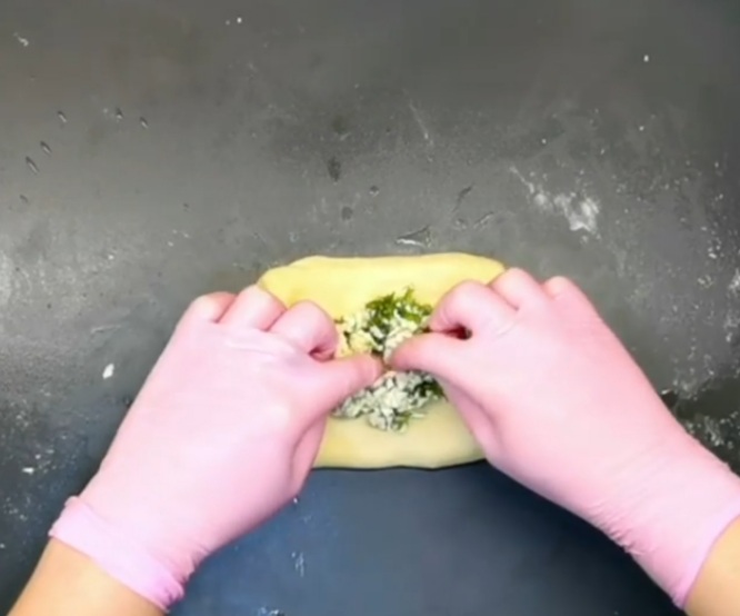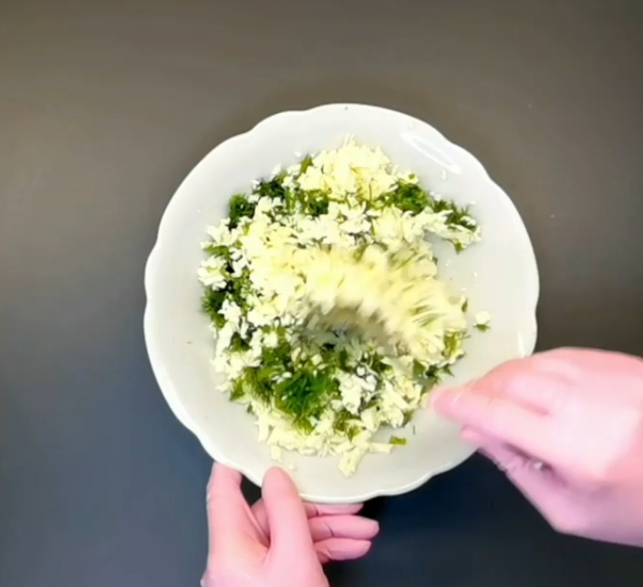 - Начинку берем Вашу улюблену: в мене це бринза перетерта із зеленню.