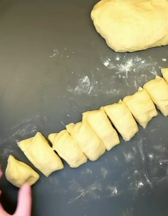 - Тісто ділимо на 16 частин (даємо відпочити), катаємо коржики і змащуємо.