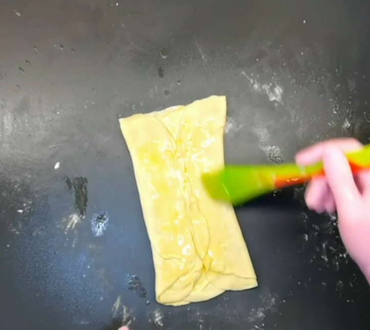- Два коржики з’єднуємо разом, ставим один на один, змащуємо згортаємо по краях, знову змащуємо.