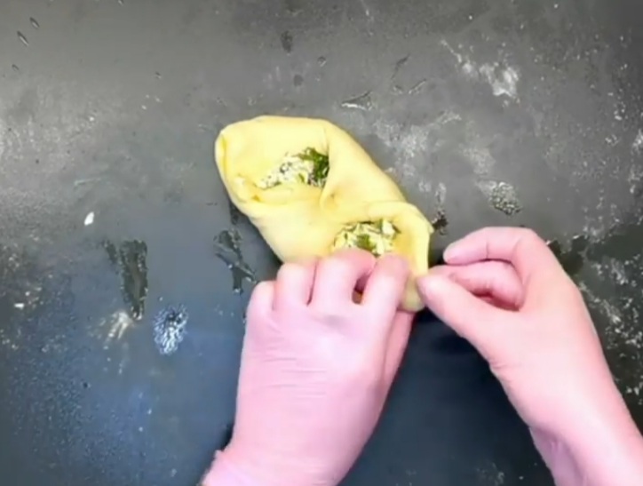 - Формуємо конвертик і туди викладаємо начинку.