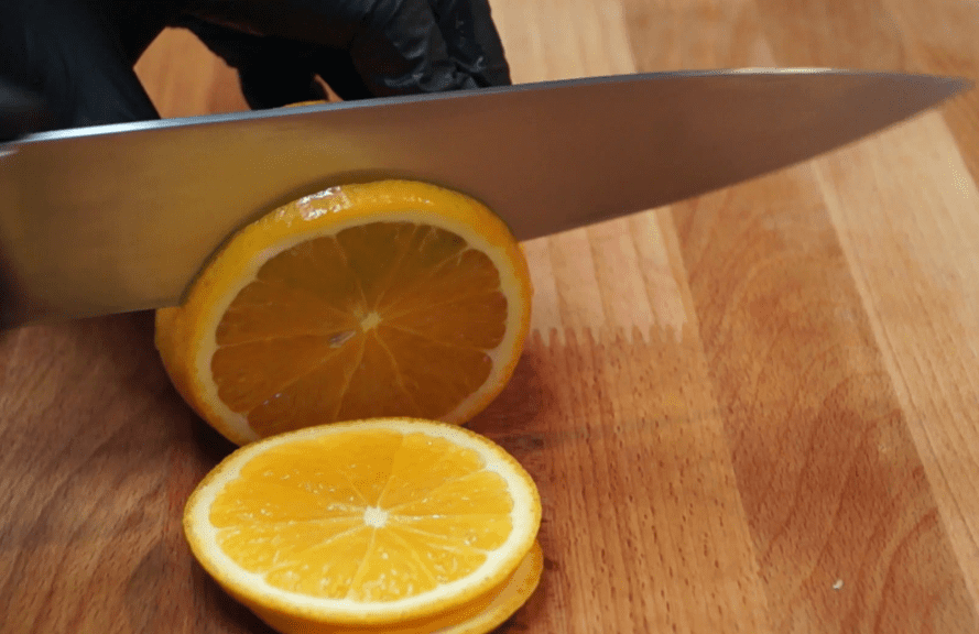 На дно кожної простерилізованої банки кладемо кружечок апельсина. Починаємо поміщати нашу суміш у банки. Для прикраси кладемо ще пару «кружечків» апельсина з боків (за бажанням).