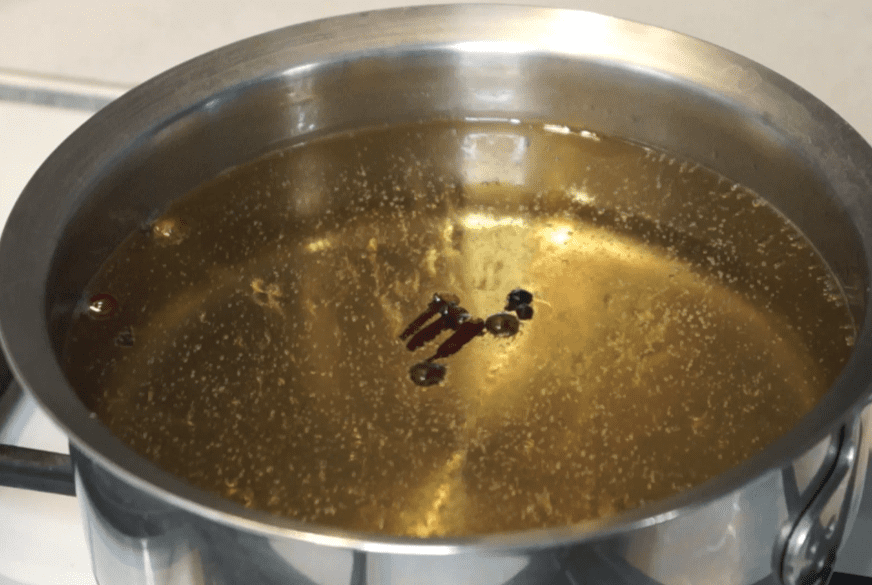 3 ст. л. цукру, 1 ст. л. солі, 5 шт. запашного перцю, 5 шт. чорного перцю, 3 шт. гвоздики, 200 мл оцту (6%), 600 мл води, 3 ст. л. олії доводимо до кипіння і варимо 8-10 хвилин. Потім повністю остуджуємо.