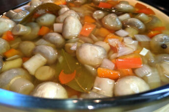- Закип’ятіть воду, залийте нею наповнені банки та накрийте стерильними кришками.