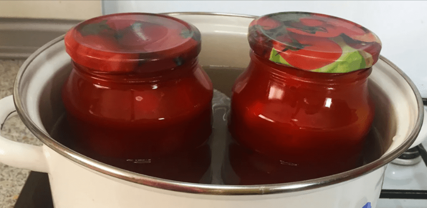 Стерилізуємо банки із розрахунку: 0,5 л. – 8-10 хвилин; 1 л. – 15 хвилин після закипання води.