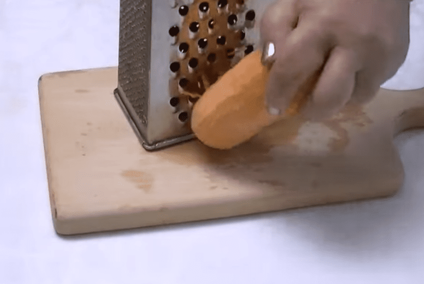 2. Беремо моркву, очищаємо від шкірки, тремо на тертці, можна на тертці для корейських салатиків, тоді намагаємося, щоб соломка з-під тертки виходила не надто довгою. Я цього разу буде терти на звичайній, але роблю і так і так.