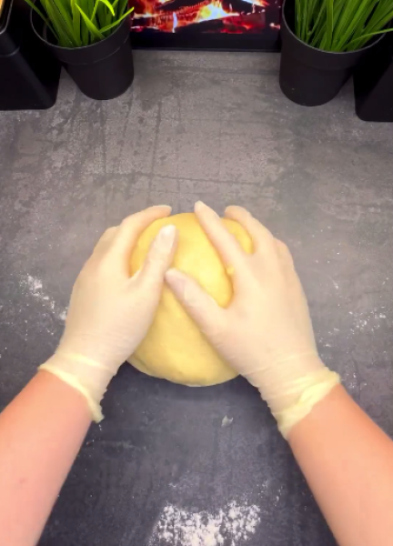 🔻Додаємо яйця, щіпку солі, вершкове масло, просіюємо борошно, замішуємо тісто, яке злегка липне до рук. Залишаємо в теплому місці на 1-2 години.