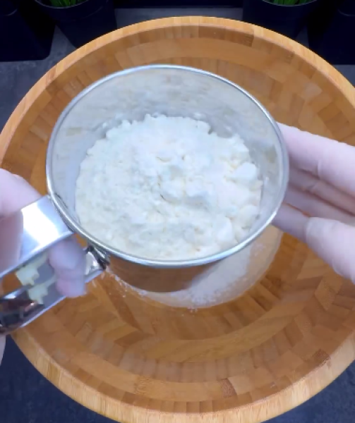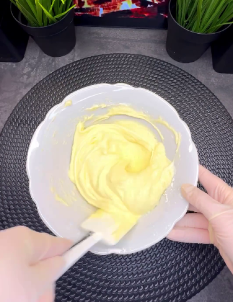 🔻Для начинки змішуємо кремоподібний сир, з цукром, сухим пудингом або крохмалем і ванільним цукром.