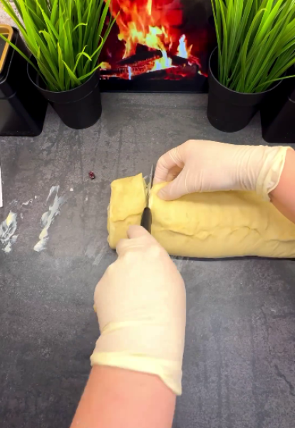 Згортаємо рулетом і нарізаємо на равлики, даємо їм постояти 15 хвилин, змащуємо яйцем.