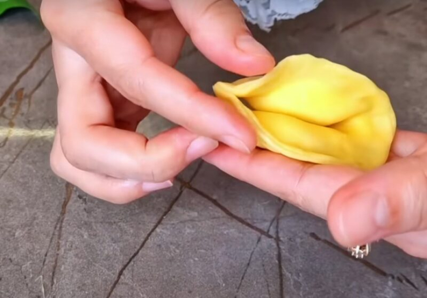 Запечатуємо начинку всередині коржів, протилежні кінці стуляємо разом.