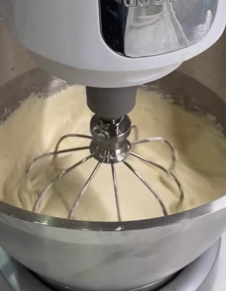 Збиваємо яйця із сіллю до пишних піків, додаємо всі інші інгредієнти і збиваємо ще раз. Тісто готове!