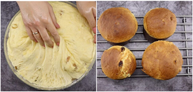 ✅ На цій стадії, коли тісто ще рідке, я додаю родзинки. Можна додати їх пізніше, домісивши в уже більш щільне тісто, але мені зручніше так.