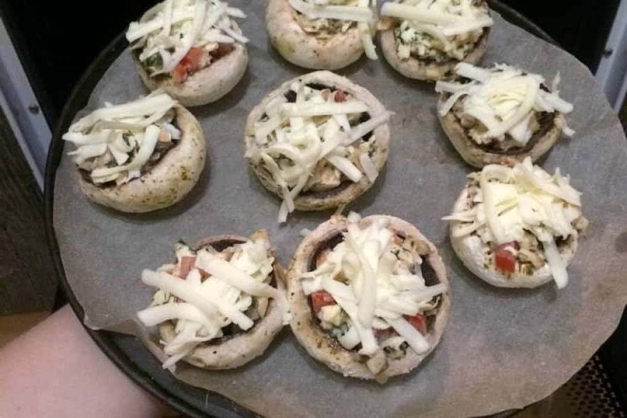 Викласти фаршировані гриби на лист, покритий пергаментом.