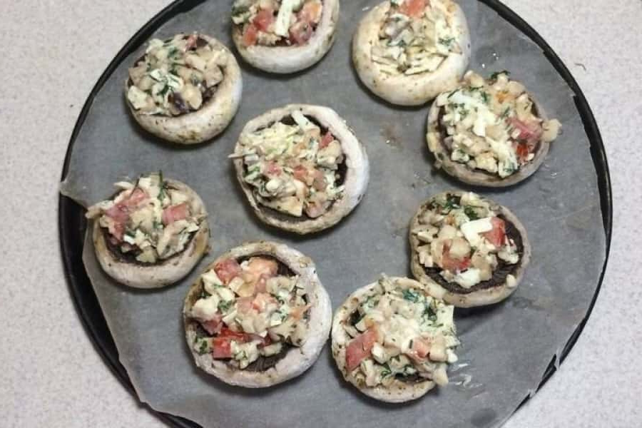 6. Начинити капелюшки грибів підготовленою масою.