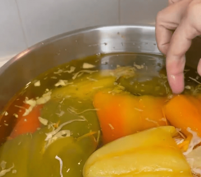 Маринаду беру 2 норми! Маринад під гнітом має повністю покрити перці!
