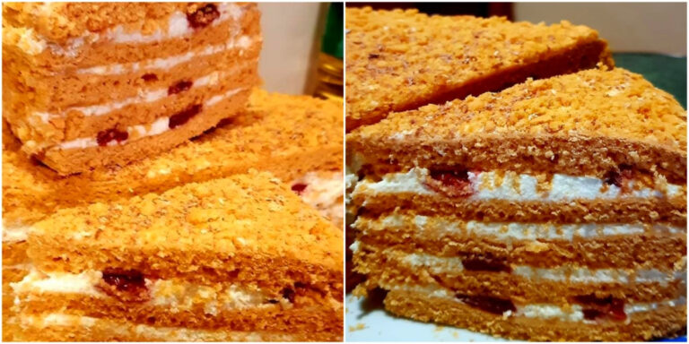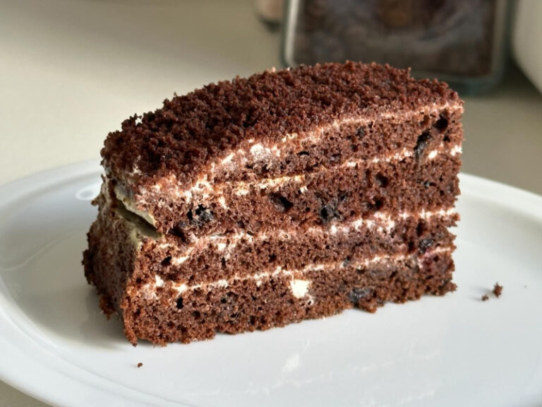 10. Зібрати торт (коржі та крем можуть бути теплими, так крем краще просочить бісквіт): корж-крем-корж…