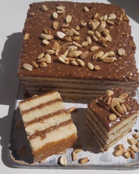 Це вогонь торт! Дуже смачний! 🔥 Масляно-вершковий соковитий бісквіт, структура ближче до кексової! Пухнастий, ніжний, ароматний! І найсмачніший крем з розтопленого з вершками шоколаду, вареного згущеного молока і багато обсмаженого арахісу! 🔥 Як вам такий внутрішній світ та опис смаку?😉 Кого спокусила на приготування? Пишіть у коментарях😉⬇️