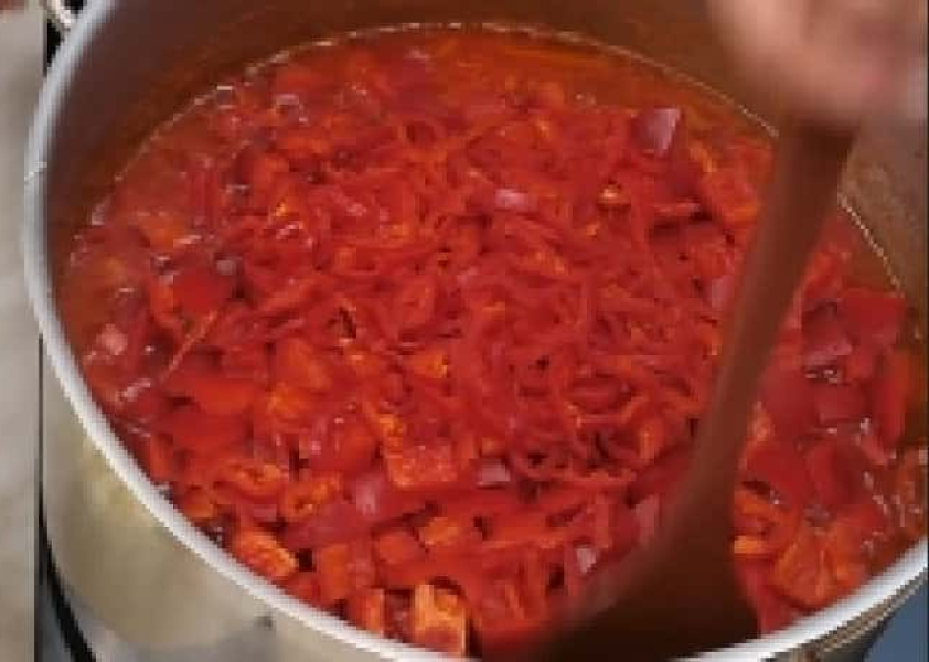 Гострий перець порізати ( можна з насінням ) соломкою або кільцями.
