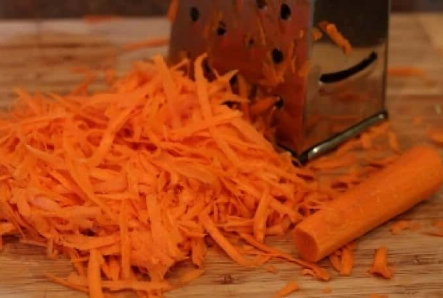 Моркву натерти на великій терці або нарізати невеликими кубиками.