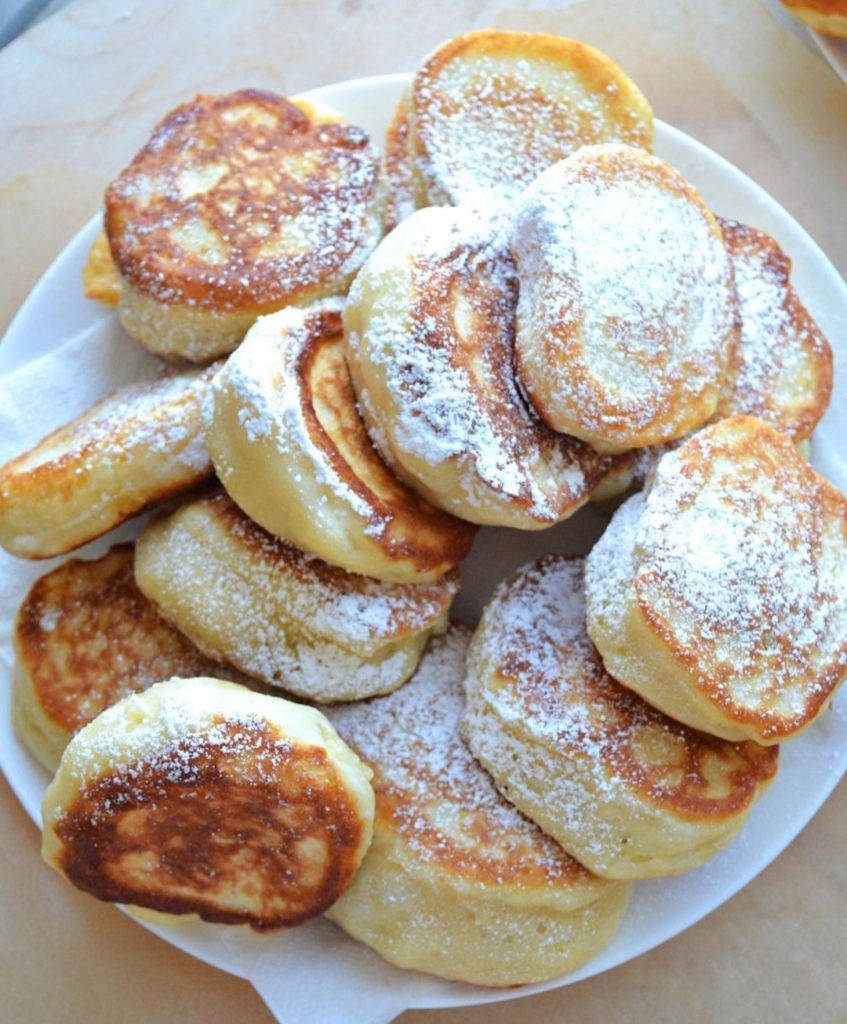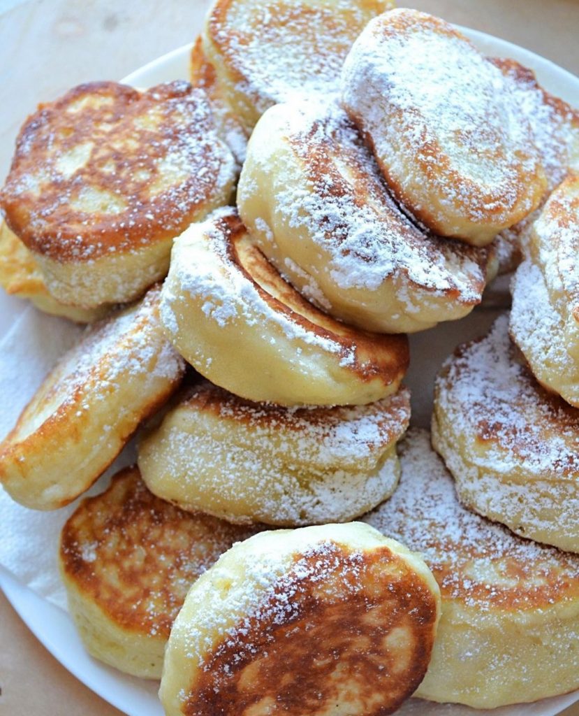 Хочу відзначити момент з консистенцією тіста. У рецепті в первісному варіанті вказано 450 гр борошна, (але!) борошно буває різним! Ці оладки не надто солодкі, тому момент з додаванням цукру орієнтуйте під свої смакові уподобання. Всі інгредієнти повинні бути кімнатної температури.