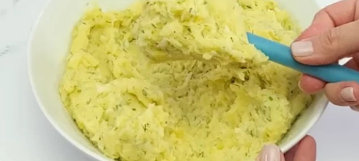- Картоплю відварюємо і робимо пюре. Твердий сир натираємо на великій тертці та відправляємо до картоплі.