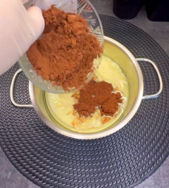 🔻Для глазурі змішуємо молоко, олію, цукор, какао, за бажанням можна додати 100 г шоколаду.