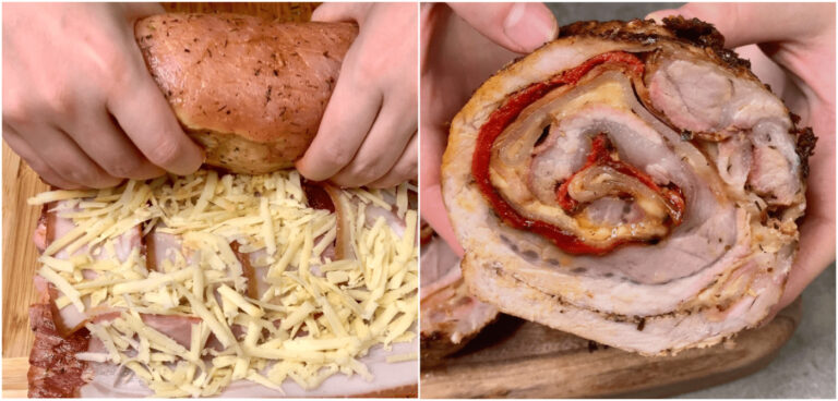 Дуже цікавий та простий рецепт красивої м’ясної страви на святковий стіл. Виходить дуже смачно, а на приготування йде мінімальна кількість інгредієнтів та часу. Гості та рідні будуть дуже задоволені!