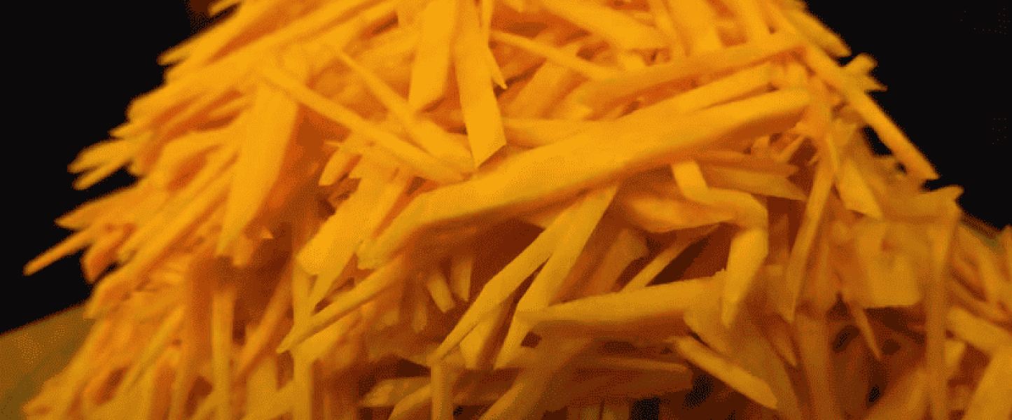 Моркву нарізаємо вузькою соломкою, можна натерти на тертці для корейської моркви.