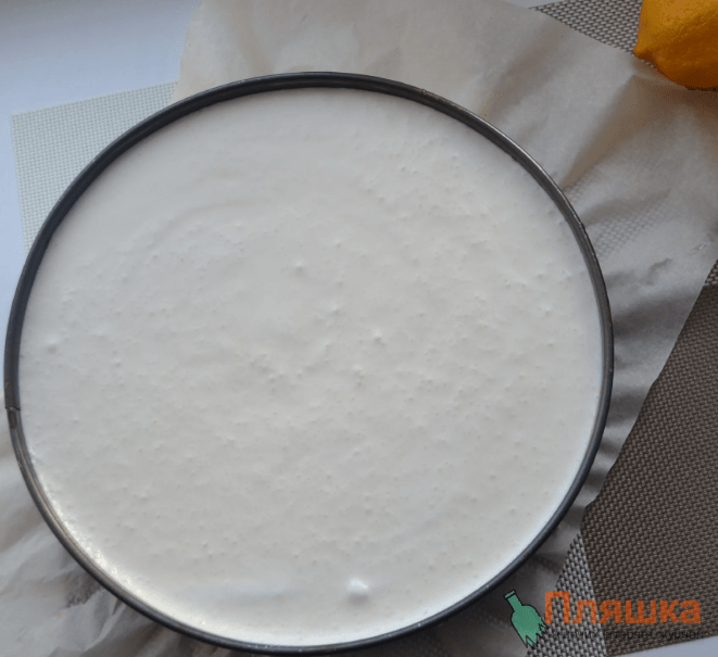Заливаємо наше приготовлене суфле у форму поверх бісквіту, забираємо в холодильник до повного застигання, приблизно на 4-5 годин. Я зазвичай роблю звечора, а вранці допрацьовую.
