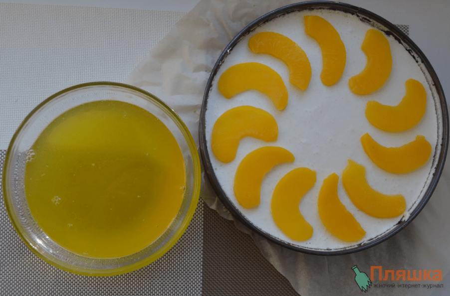 Пропоную Вам приготувати торт-тістечко з цитрусовим смаком, прикрашене маринованими персиками – це неймовірно смачно, ароматно і ніжно, спробуйте!