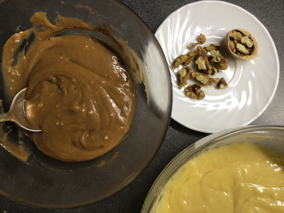 Ще одна імпровізація. Вирішила, чому б не додати мелених волоських горіхів. У шоколадне тісто додала 3 мелених волоських горіха