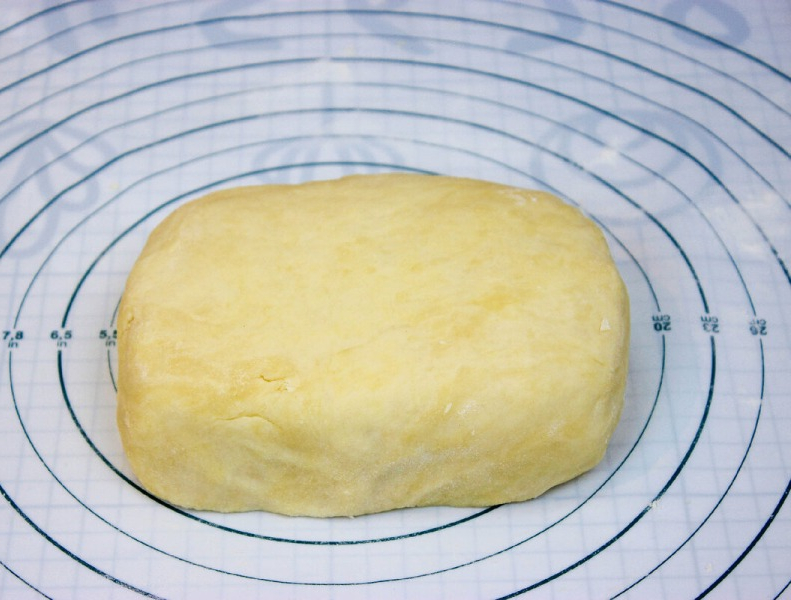 Тісто прибираємо в целофановий пакет, надаємо прямокутної форми, так зручніше потім його використовувати. Забираємо тісто в холодильник години на 2-3 години.