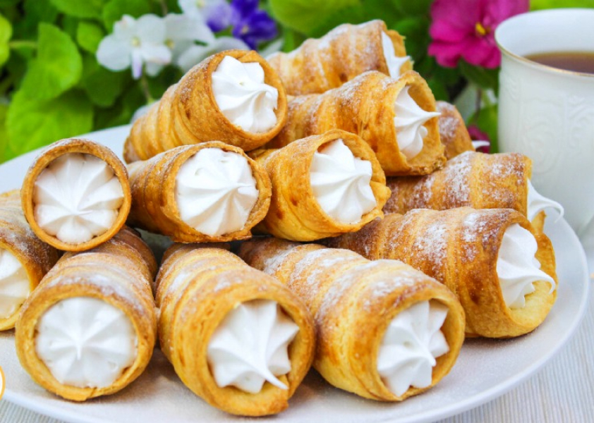 Хрусткі трубочки та дуже смачний легкий повітряний білковий крем зі смаком ванілі. Готуються трубочки з білковим кремом дуже легко та просто на швидкому листковому тісті. Такі тістечка можуть стати окрасою будь-якого святкового столу. Приготуйте та спробуйте!