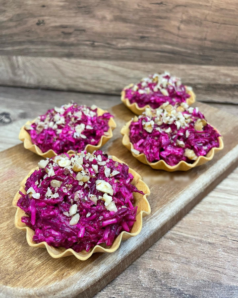 🎄В тарталетки викласти начинку і прикрасити дрібно посіченими волоськими горіхами. Подавати до святкового столу.