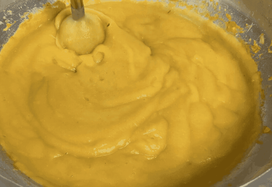 Знімаю таз з вогню і пробиваю яблука занурювальним блендером до стану пюре, щоб не залишилося жодної грудочки.