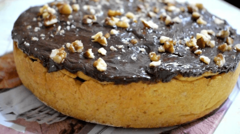 Потім коржі з’єднуємо. Зверху змащуємо тонким шаром яблучного повидла і посипаємо дрібно меленим печивом та горіхами.
