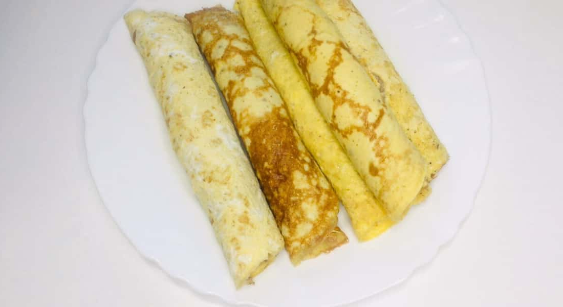 - 4 яйця – виходить 5 млинців, якщо діаметр сковороди 20 см