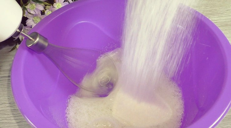 Тим часом збиваю білки з цукром, щойно цукор розчинився, готово, до піків не збиваю.