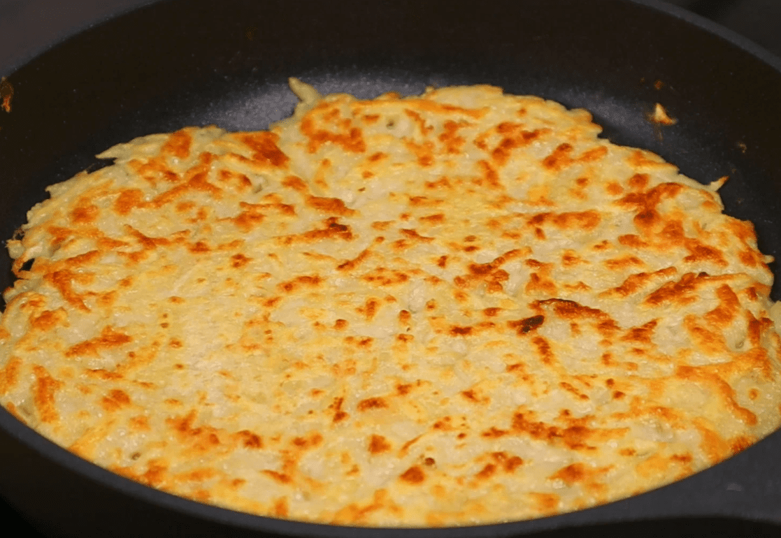 Декілька великих ложок викладаю на розігріту і змащену олією сковороду, швидко розподіляю по дну у формі тонкого млинця і смажу з двох боків на невеликому вогні до рум’яного кольору.