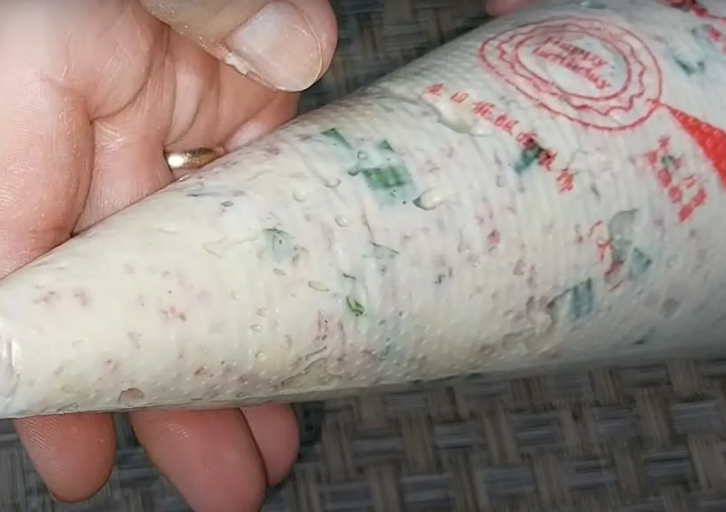 Перекладаємо тісто у пакет, відрізаємо куточок.