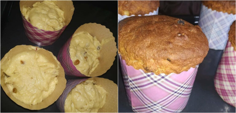 Стіл і руки рясно змащуємо олією. Паперові форми змащуємо олією. Викладаємо тісто та ділимо його на частини. Виходить 1форма d 11 см – 400 г тіста; 3 форми d 9 см – 250 г тіста; 1 форма d 7 см, висота 8,5 см – 150 г тіста. Якщо немає ваги, тісто заповнюємо на половину форми.
